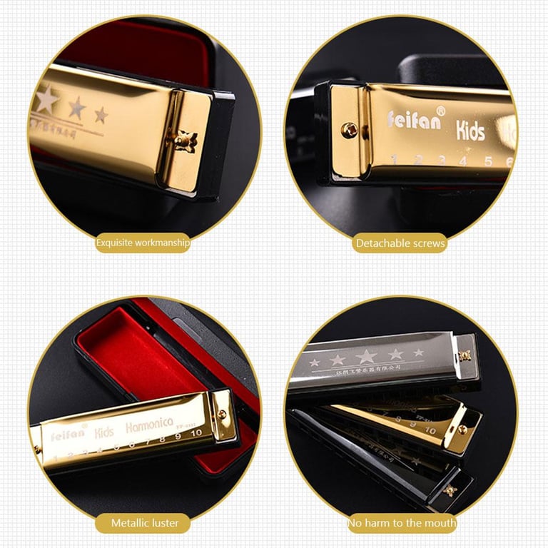 10 Holes Harmonica C Key Blues Metal Harmonica Musical Instrument Educational Toy with Box