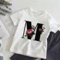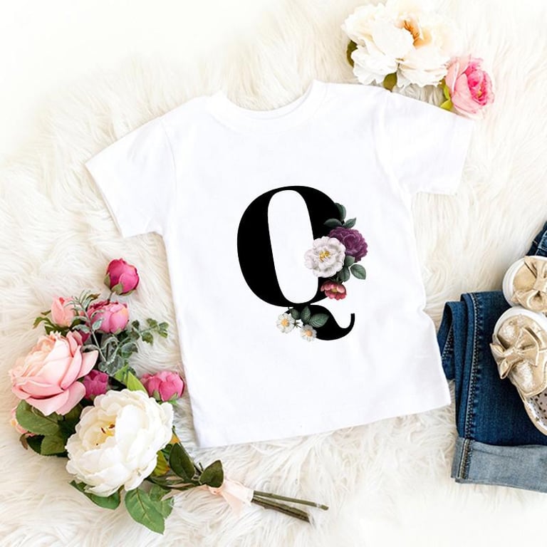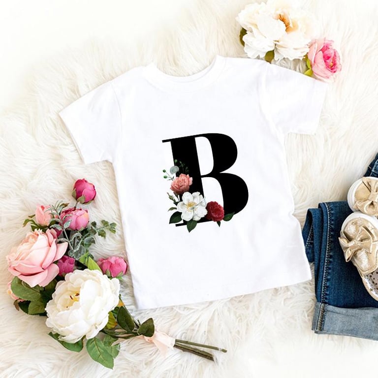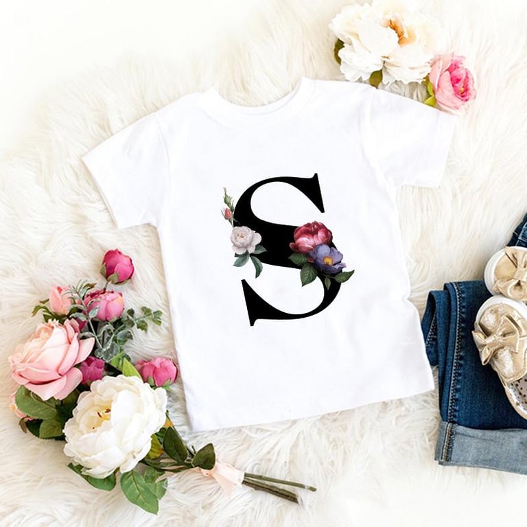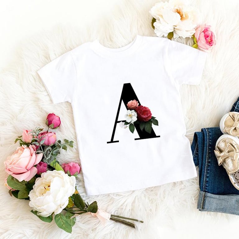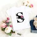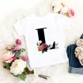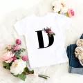 Flower English Alphabet New Cartoon Print Girls T Shirt Leisure Girl T-shirt Children Harajuku Boy Tees Kawaii Kids White Tops