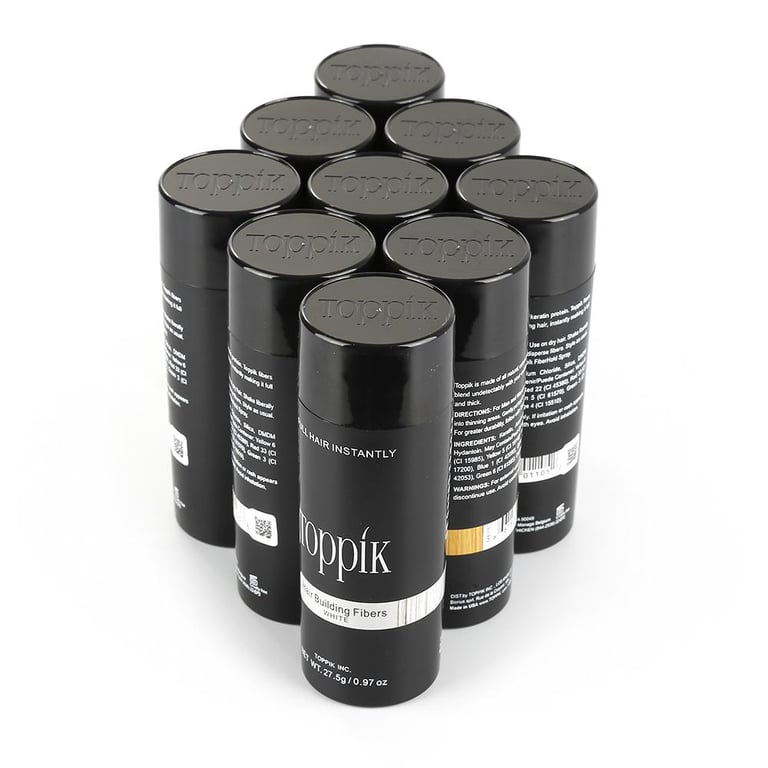 Made of natural, colored Keratin protein that is statically charged, TOPPIK Fibers intertwine with your existing hair for a completely natural look.