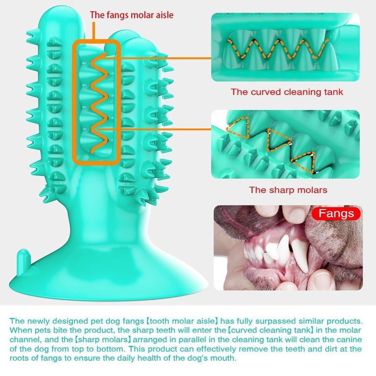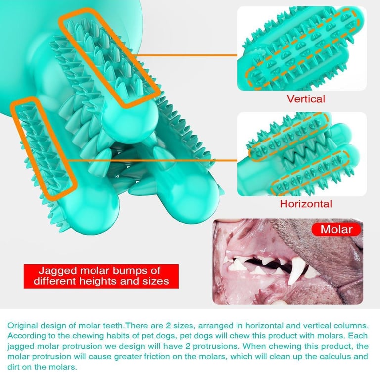 \n4. Comprehensive Cleaning:When pets bite this toothbrush, the teeth will enter the newly designed tooth cleaning channel, and through the channel to increase the back and forth friction of the tooth grinding, it will effectively remove pet stones and dirt.