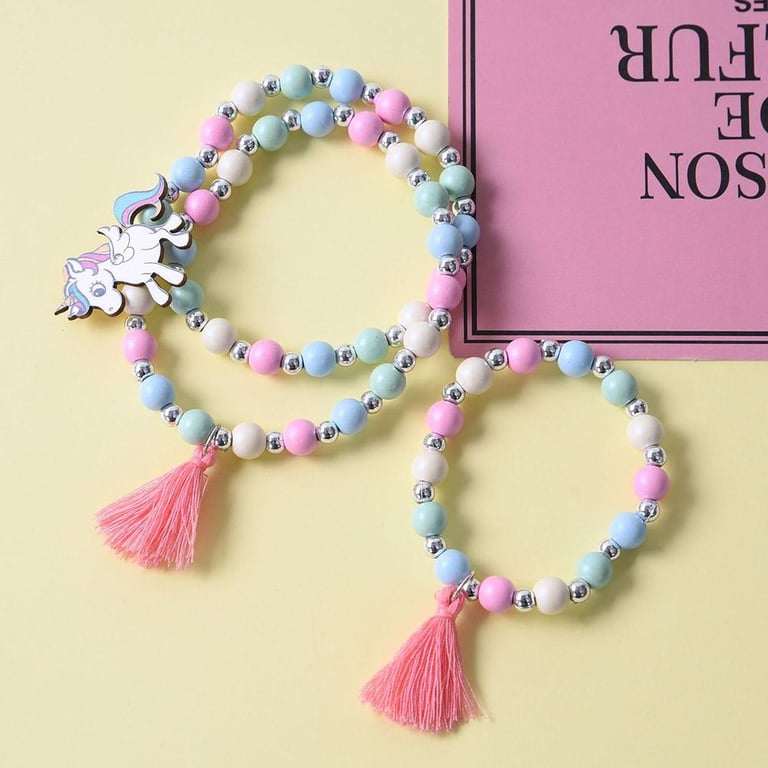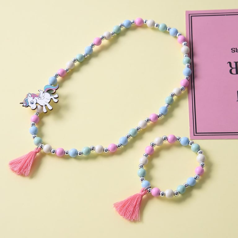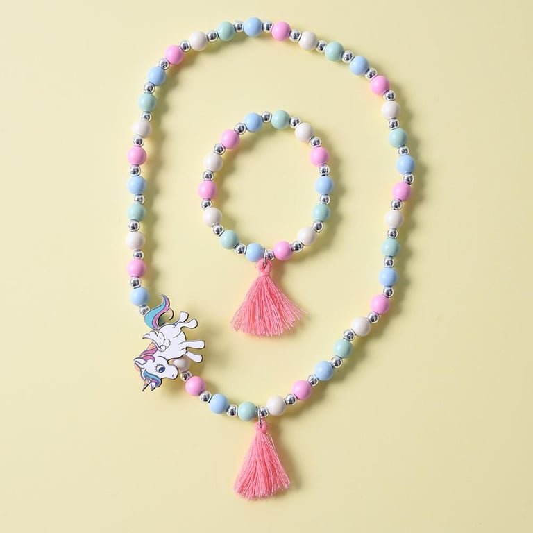 2Pcs Cute Unicorn Wooden Beads Girl's Necklace Bracelet Baby Children's Jewelry Gift