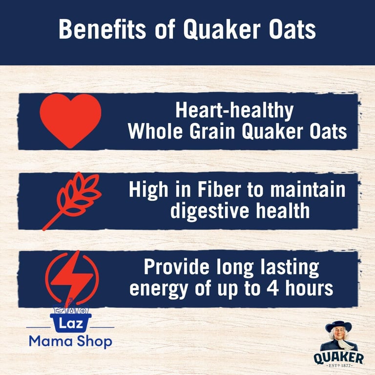 Quaker Smooth & Creamy Instant Oatmeal is made from 100% natural wholegrain oats. It is a delicious source of fibre, calcium, iron, and essential vitamins and minerals. A healthy diet rich in whole grains, fruits and vegetables that contain dietary fibre may reduce the risk of heart disease. It is also low in fat and a cholesterol free food. Start your day with this hearty, warming and healthy breakfast!
