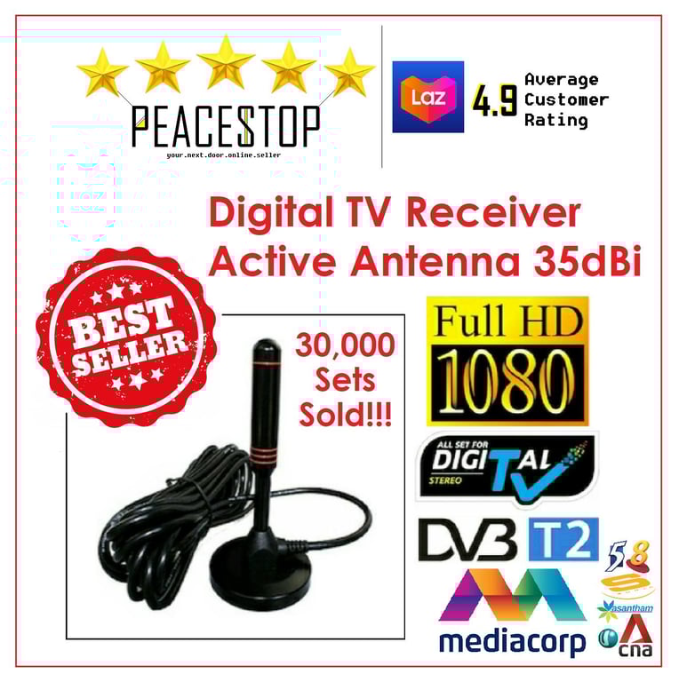 High Gain 35dBi Active Antenna Singapore Digital TV Antenna ★ DVB-T2 USB Antenna works with Digital TV Box