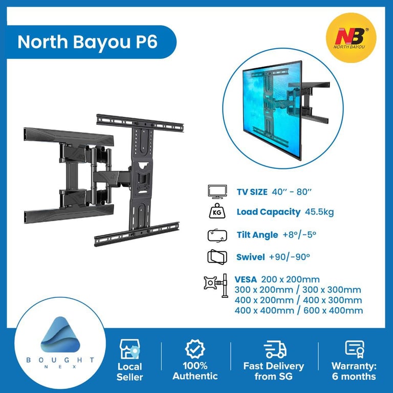 🔥The P6 cantilever TV mount is a popular design for consumers wishing to easily install their TV at home by themselves. The dual arm design adds strength and stability to the unit. With a sleek, high-quality powder coated finish, this unit allows for quick installation of an LCD/LED display onto the wall plate.