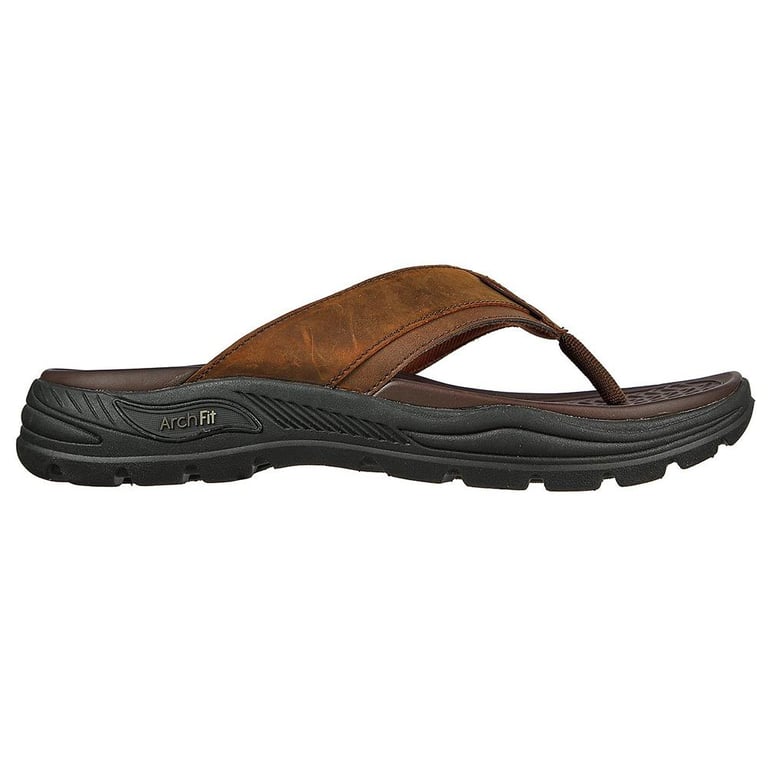 Description:Stay well supported in hotter weather wearing the Skechers Arch Fit® SD sandal. This thong style sandal features a smooth oiled leather upper with an Arch Fit® cushioned footbed.Features:- Patented Skechers Arch Fit® contoured footbed with podiatrist-certified arch support- Podiatrist-designed shape developed with 20 years of data and 120,000 unweighted foot scans- Contoured footbed helps mold to your foot to reduce shock and increase weight dispersion- Smooth oiled leather upper with stitching detail- Thong casual comfort sandal design- Flexible rubber traction outsole- Skechers® and Arch Fit® logo details Brand: SkechersA multi-billion-dollar, award-winning global brand, Skechers designs and develops lifestyle and performance product known for style, innovation, quality and comfort. Along with its diverse footwear offering, the Company's head-to-toe collections for men, women and kids include a growing range of apparel and accessories.Actual product color may vary from the images shown. This may be due to lighting conditions at the time the photo was taken or different monitor and mobile display capabilities.Skechers cannot guarantee that the color you see accurately portrays the true color of the product.