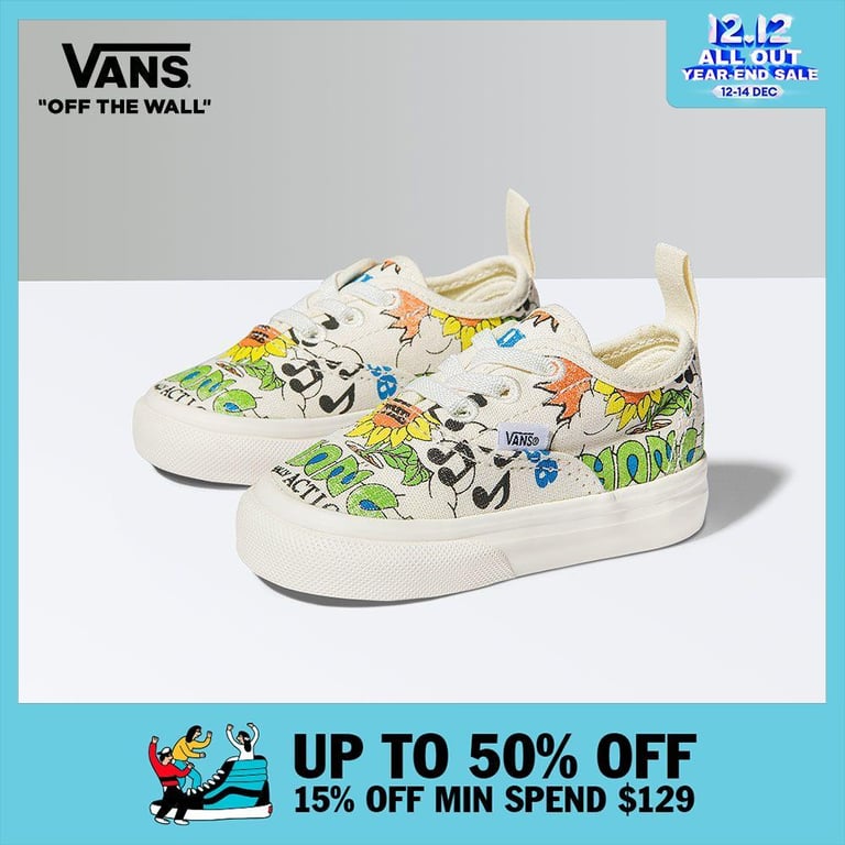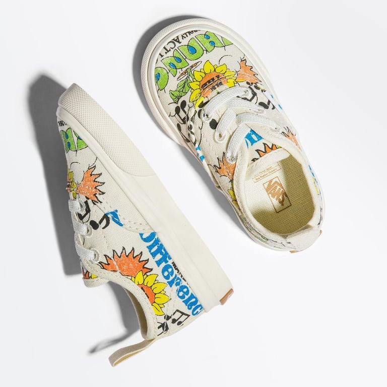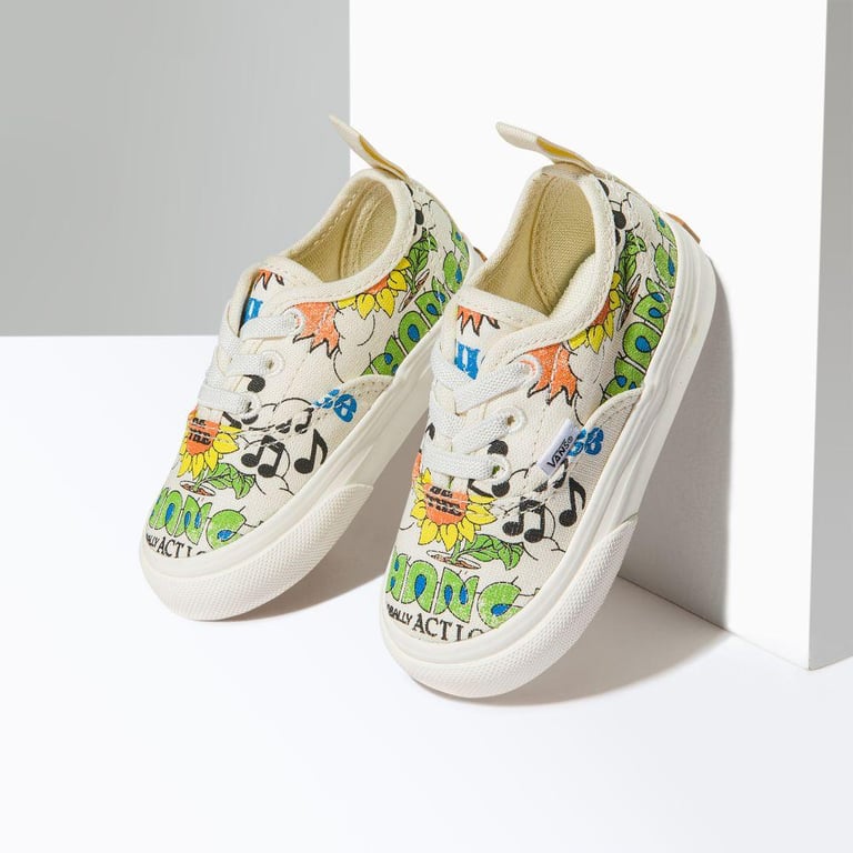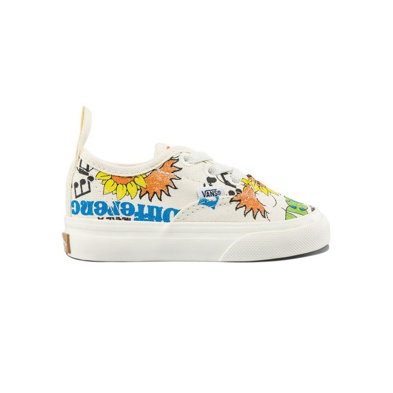 Vans’ purpose is to enable creative expression by encouraging the “Off The Wall” spirit that comes from expressing your true self. As part of our commitment to inspire youth culture, we recognize that we have a responsibility to move towards circular products and systems that use regenerative and recycled materials, design out waste, and create systems that keep product in use and out of landfills._x000D__x000D_As an initial step in our journey towards sustainability, the Toddlers Eco Theory Authentic Elastic Lace is made with 50% recycled cotton and 50% hemp, and features an allover print reminding us all to be the change we hope to see in the world. Along with a responsibly sourced natural rubber outsole that still maintains the grip and durability that Vans has been known for since 1966, this iconic low top shoe includes elastic laces and heel pulls for an easy on-and-off fit.