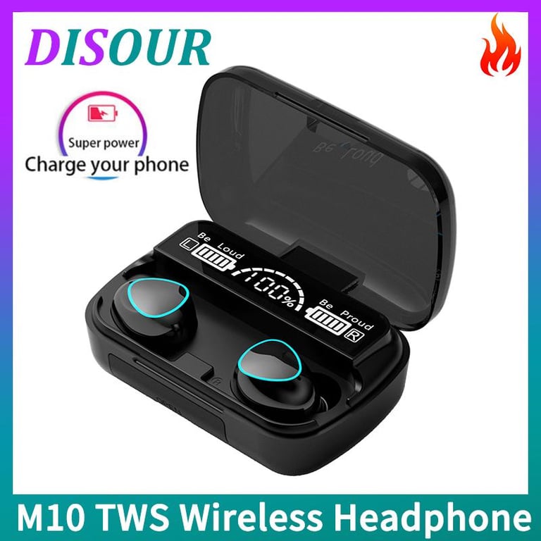 DISOUR Original M10 TWS Bluetooth 5.1 Earphones 3500mAh LED Display CVC8.0 Hifi Bass Music Noice Cancelling Waterproof Wireless Headphones Touch Control Sport Waterproof Gaming Earbuds