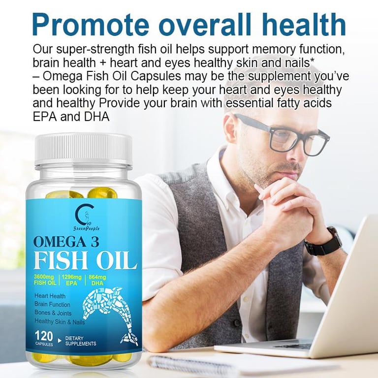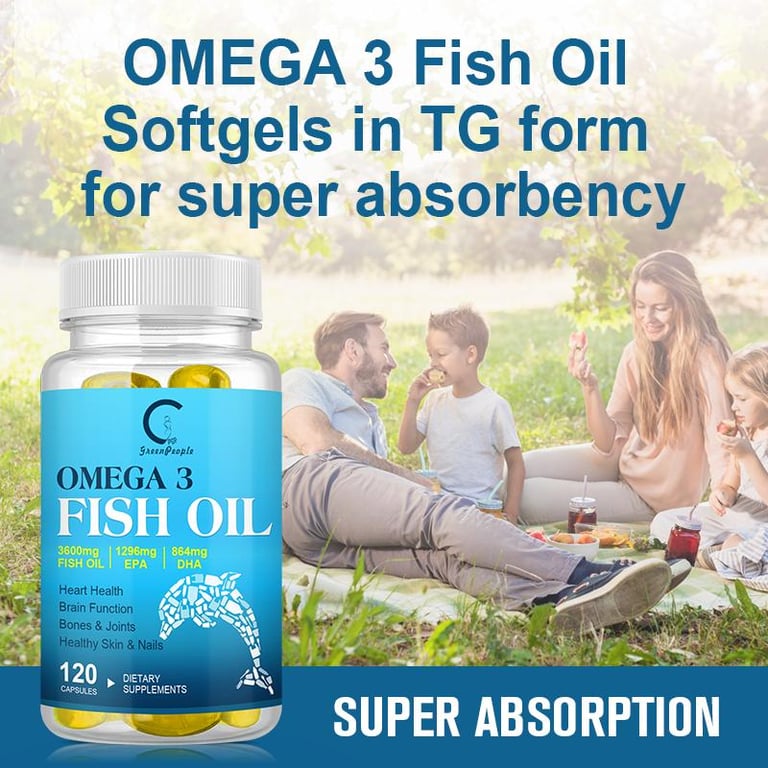 GPGP GreenPeople Omega3 Fish Oil – Triple Strength Dietary Nutritional Supplement – Helps Support Brain & Heart Health, Includes EPA & DHA – 3600mg