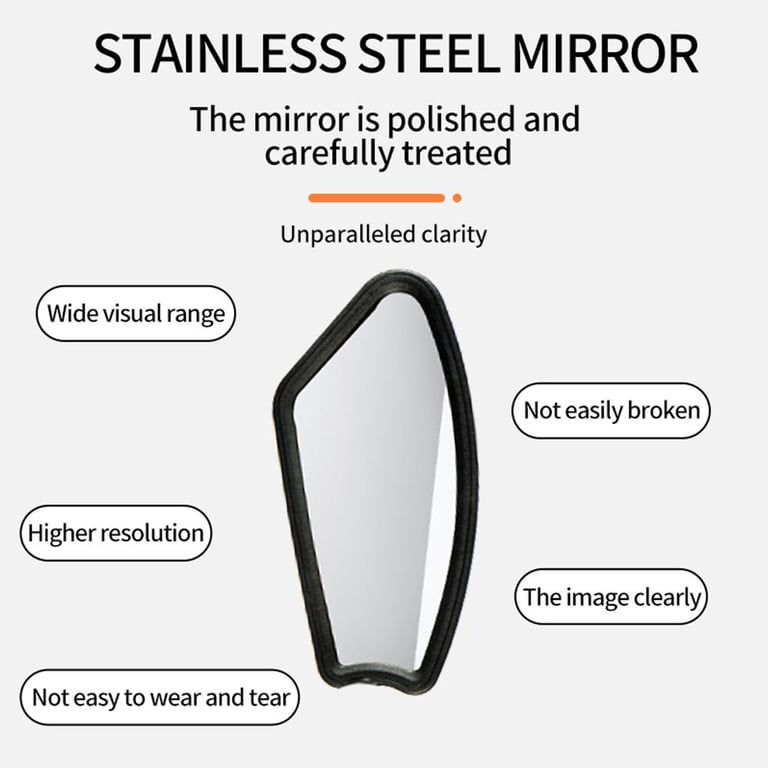 \r\n\r\nThe mirror:STAINLESS STEEL,IMPACT RESISTANCE, NO SHATTERING,THE MIRROR IS POLISHED,AND CAREFULLY TREATED,WIDEVISUAL RANGE AND CLEAR IMAGE
