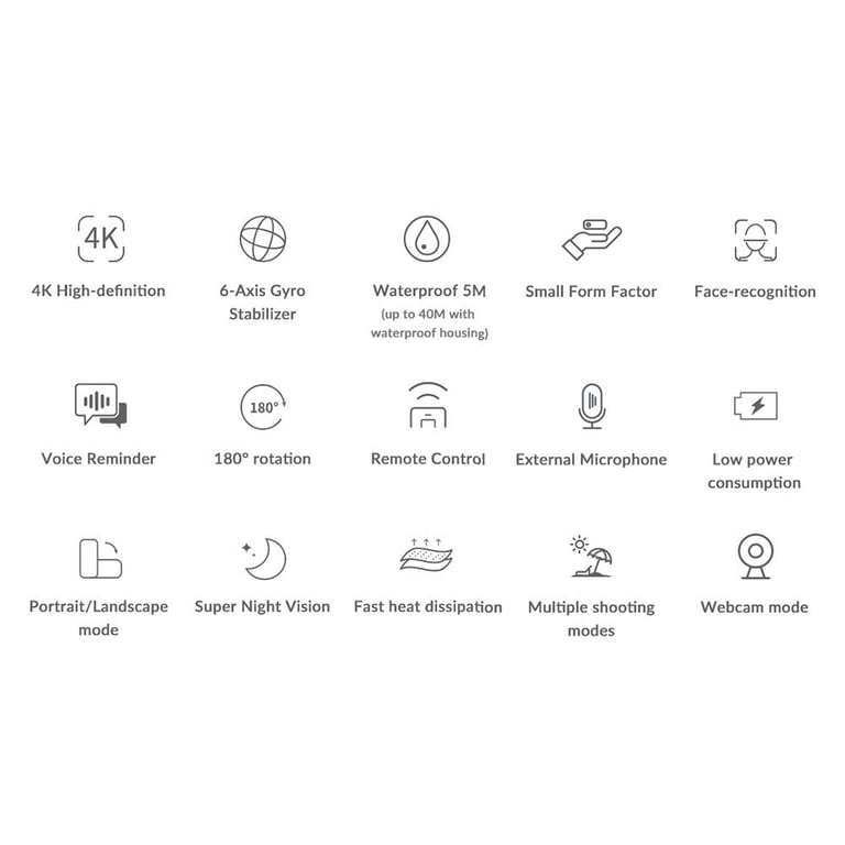 - 4k resolution Action camera: Adopts high-resolution image sensor, supports 4K/24fps HD video recording; 6-axis anti-shake design ensures more stable and more smooth recording image, and night vision function allows you to record wonderful videos even at night.