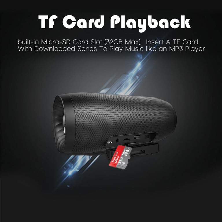 \n4). built-in Micro-SD Card Slot, Support TF Card Play Mode, Insert A TF Card With Downloaded Songs To Play Music, support MP3 / WMA format songs.