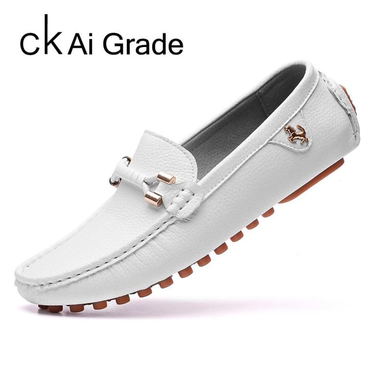 Good Goods Summer British Moccosins Genuine Leather White Driving Shoes Soft Bottom Trendy Casual Shoes Men's Shoes Leather Shoes Lazy round