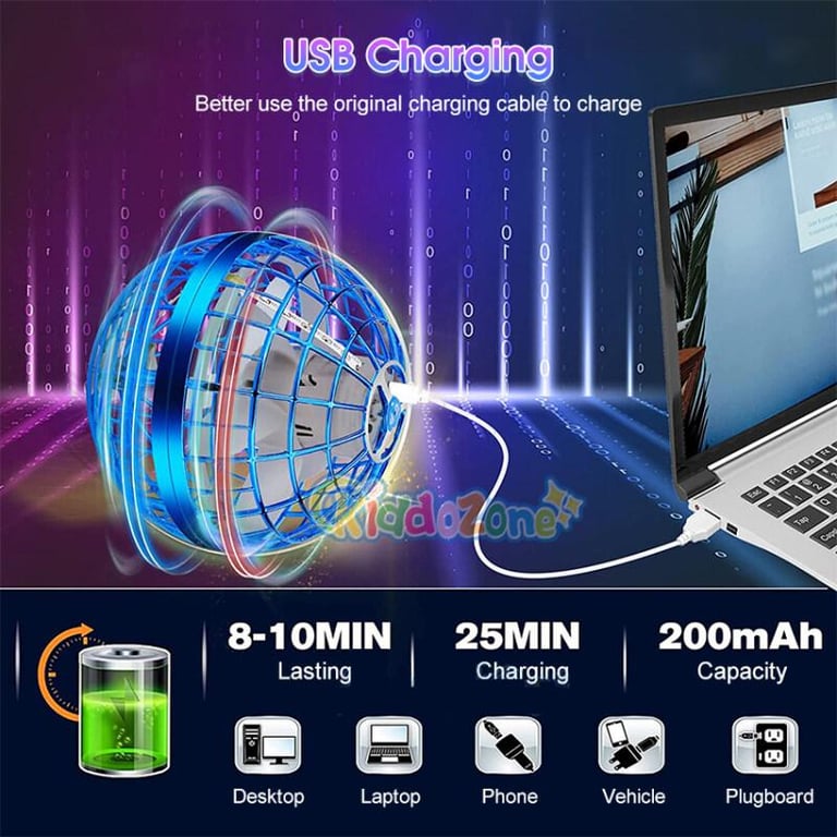 • Rechargeable And Portable: Power the fly space orb up by USB cable for 25 minutes to get fully charged and a single charge will give you a full 8-10 minutes of tricked out flight time.
