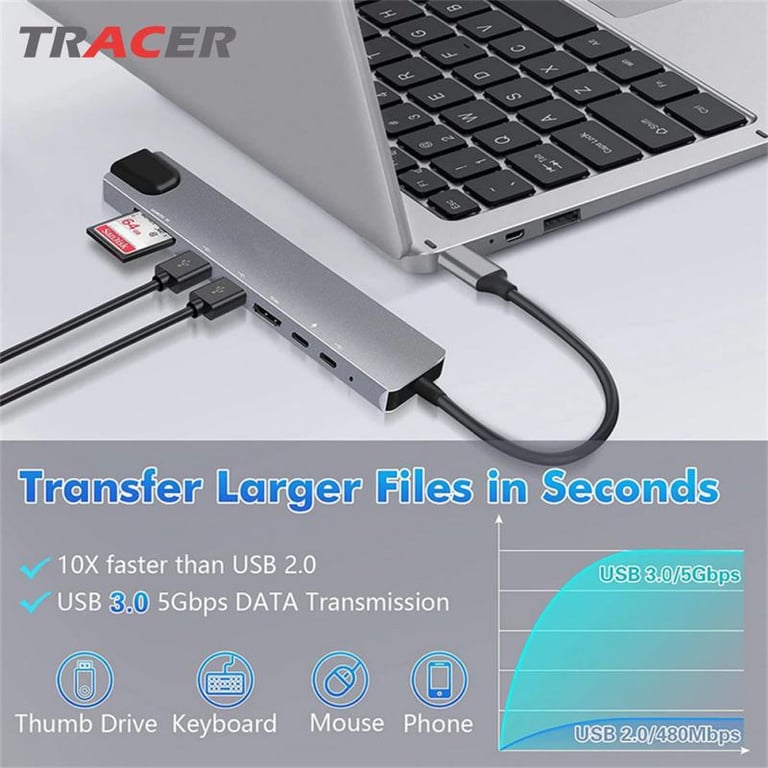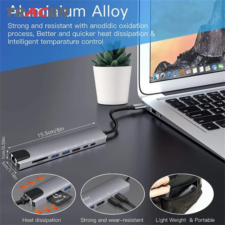 When connecting to a laptop, charging your phone via USB-A or USB-C female ports is not supported due to limited power. Please supply power when connecting power-consuming devices, only 1 HDD/SSD can be connected at a time. To prevent Wifi interference, you can wrap the wire around the type-c port with foil, or use a 5GHz frequency router. Also, unplug the Ethernet cable and PD charging cable from the adapter when not in use. For Xiaomi laptops, we recommend connecting non-original PD power adapters, such as Apple, Dell adapters, to ensure normal use;