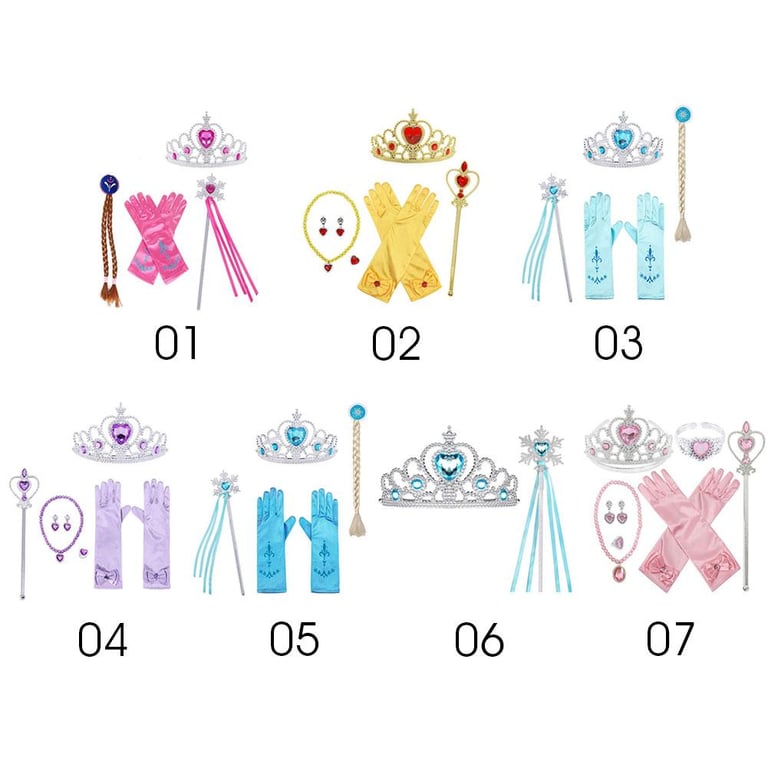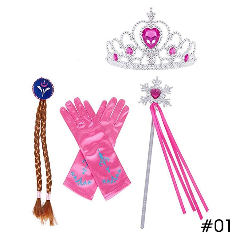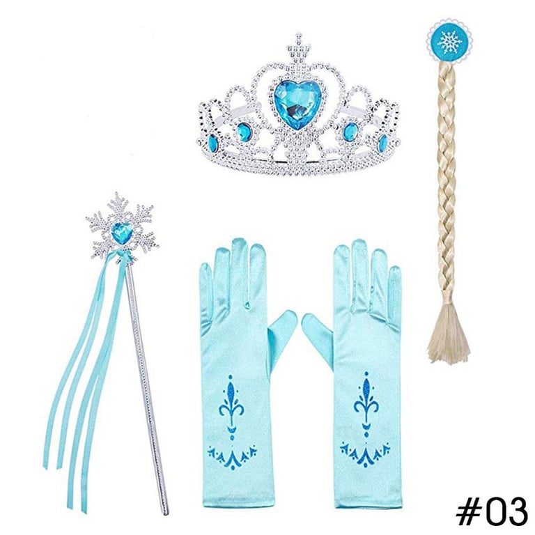 Girl Frozen Princess Wand Crown Set Children Anna Magic Wig Gloves Ring Earring Set
