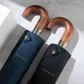 Luxury Wooden Large Umbrella for Men Business Style Windproof 10 Bones 3 Fold Automatic Umbrella Foldable