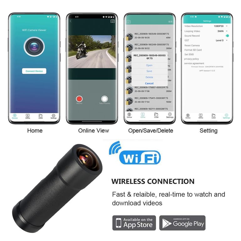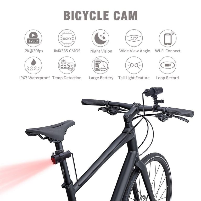 VSYS Bicycle camera recorder 2K 170 degrees wide angles WiFi bike camera 6 hours long battery life add temperature display
