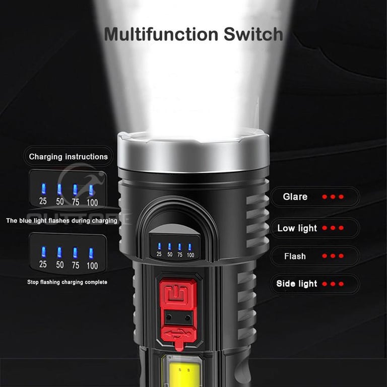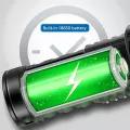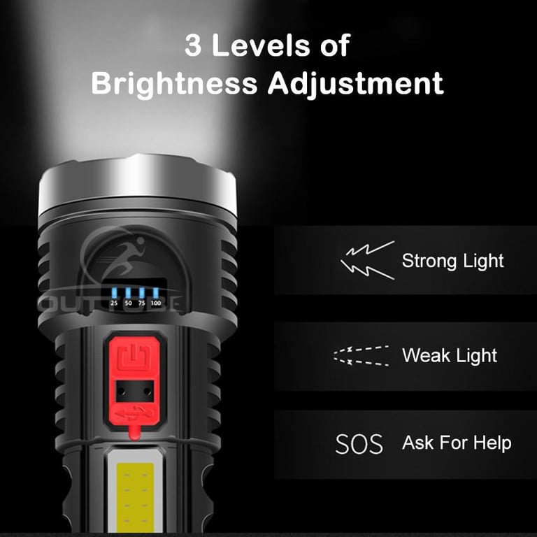 - Adjustable Brightness AndLong Lighting Distance : This spotlight source is CREE LED,1500 lumen,which gives you 2 brightness levels to choose.Besides,Ultra-long illumination range up to 200-500m meters enables you to use it as a long distance tactical flashlight,a convenient outdoor rechargeable spotlight.