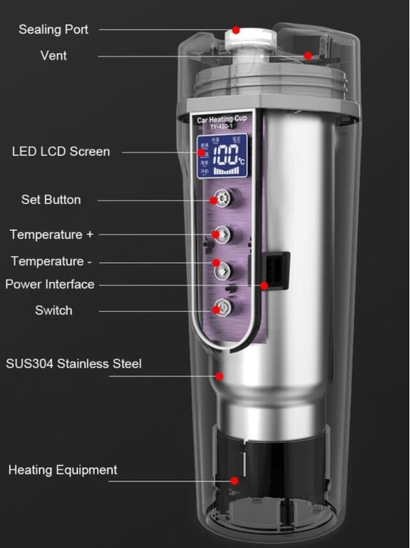 Smart Portable Electric Water Bottle for Coffee Tea Milk 450ML Auto Travelling Electric Water Kettle Cup BPA-Free LCD Display 304 SE 304 Stainless Steel Water Bottle for home car