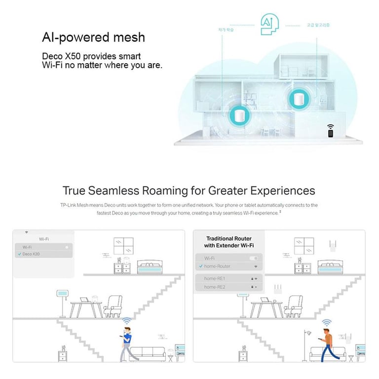 \nAI-based mesh - Intelligently learns your network environment to provide an ideal WiFi experience for your home.