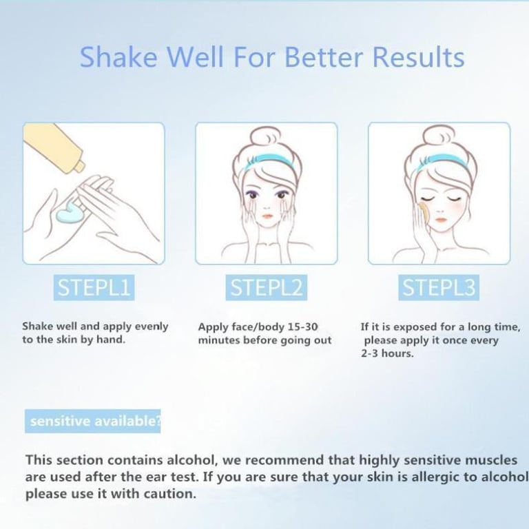 Item description:1.Sun Protection Essence full protection. But the texture is so special that it can be applied over the day without makeup. And not stain.