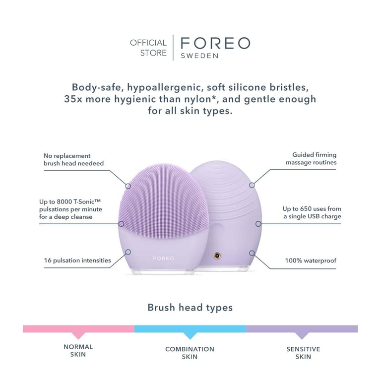 FOREO LUNA 3 for Combination Skin Facial Cleansing & Firming Face Massage Brush, Ultra-hygienic Silicone, Rechargeable [2-Year Warranty, App Connected]