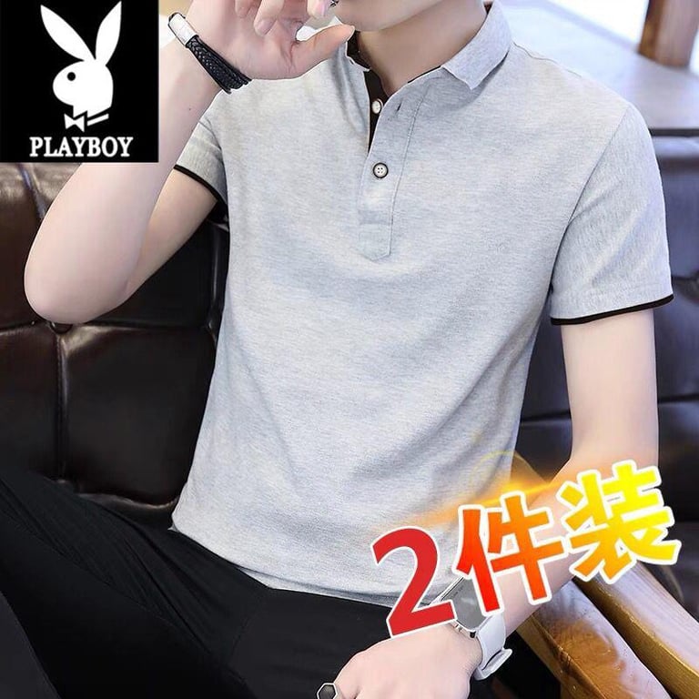 Playboy Short-Sleeved T-shirt Men's Half Sleeve Polo Shirt Cotton Summer Clothing Shirt Collar T-shirt Youth Korean Style Top Clothes