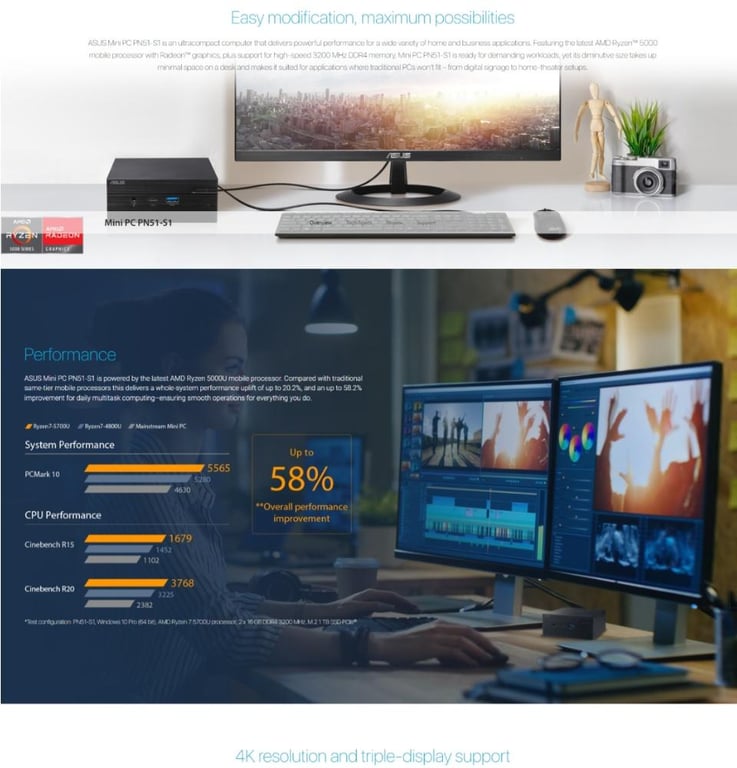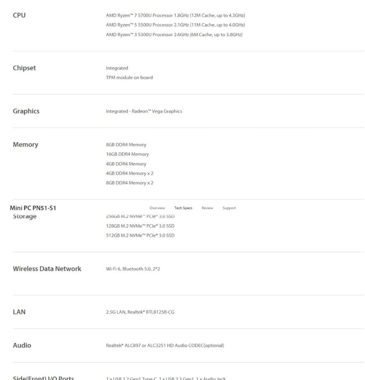 (ALLSTARS : We are Back/ Mini PC Promo) ASUS PN51 Ryzen7 5700U / PN51-S1-B-B7216MD +16GB 3200MHz+1TB NVME SSD+Unactivated MS Win10 Home (AMD Ryzen 7 5700U / Intel WiFi 6 / BT5.0 / 2.5G LAN / HDMI+DP / USB3.2 Type-C+Type-A / Wired KB+Mouse)