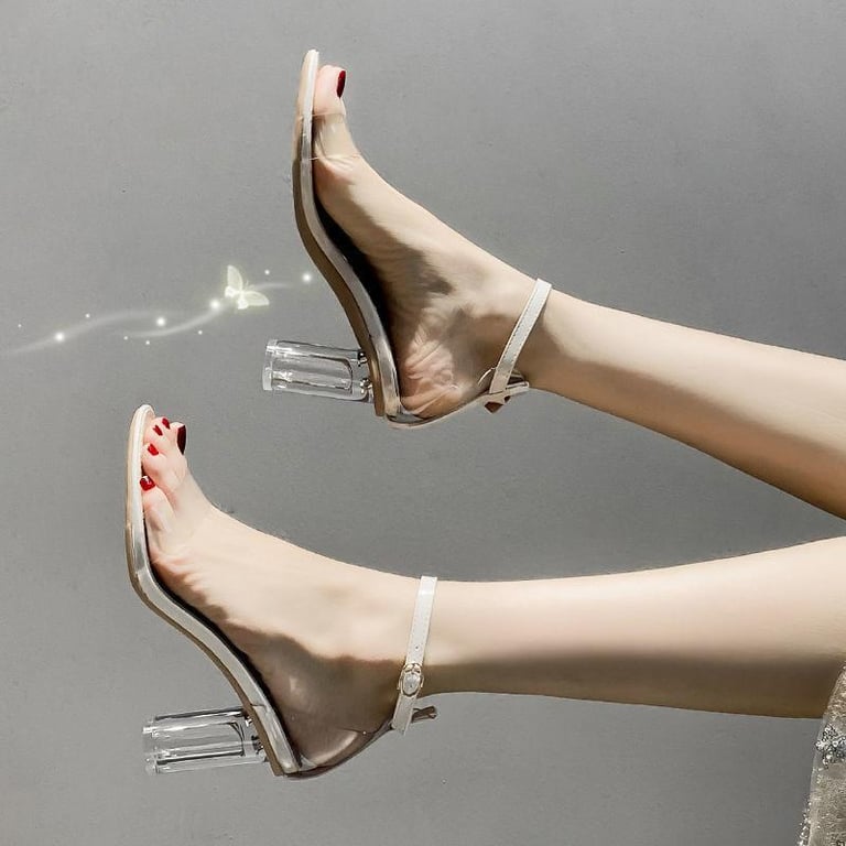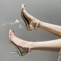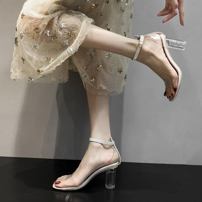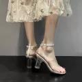 2022 Early Spring New Transparent Buckle Chunky Heel Open Toe Sandals Women's Crystal Heel round Heel Elegant High Heels