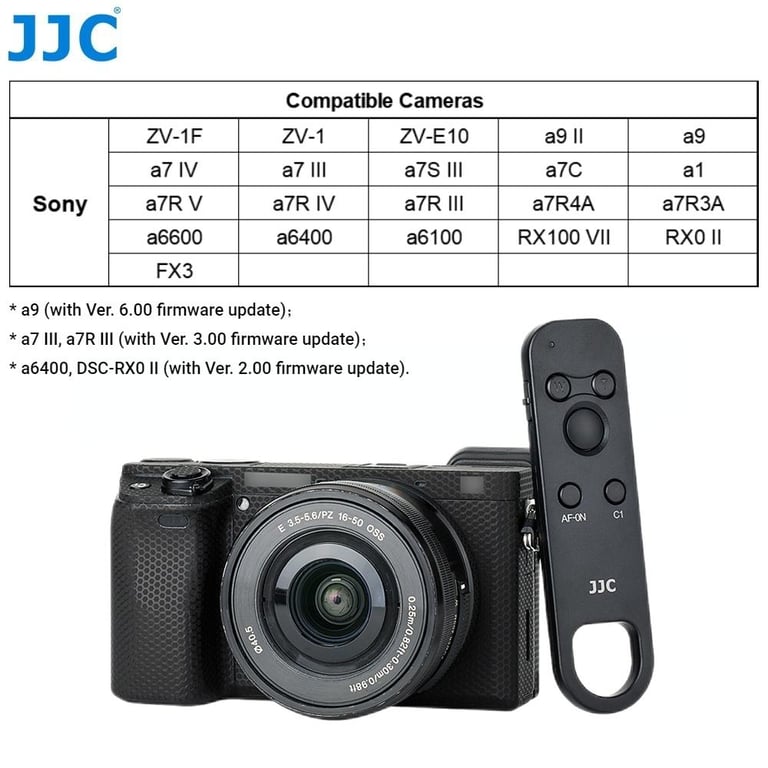 JJC RMT-P1BT Bluetooth Wireless Remote Control Commander for Sony A7RV ZV-1F A7IV ZV-1 RX100VII ZV-E10 A7C A6100 A6600 A1 A7RIV A7SIII A9II Camera