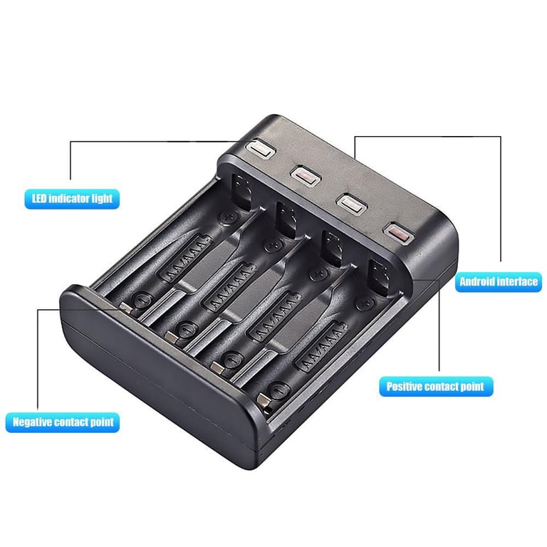 Features: 1. 4 independent separate charging, portable charging mode, conventional DC5V USB power supply, easy to charge. 2. Equipped with charging management IC, it can more accurately control the charging process, full of self-stop, full of power to turn the lamp, prevent the battery from overcharging. 3. Better protection of battery performance, extend battery life.