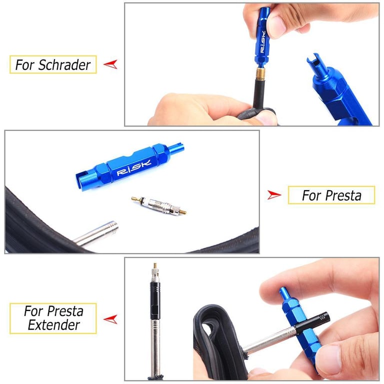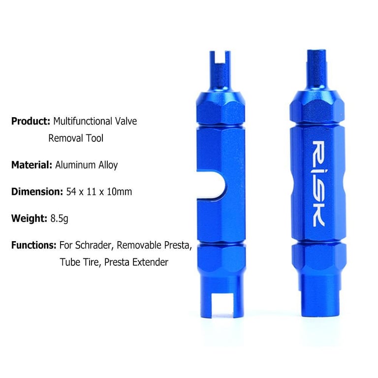 - Small valve tool designed to remove and install Schrader/Presta valve cores and Presta valve extenders.