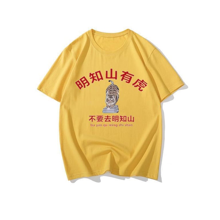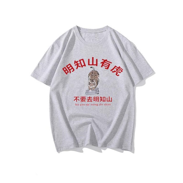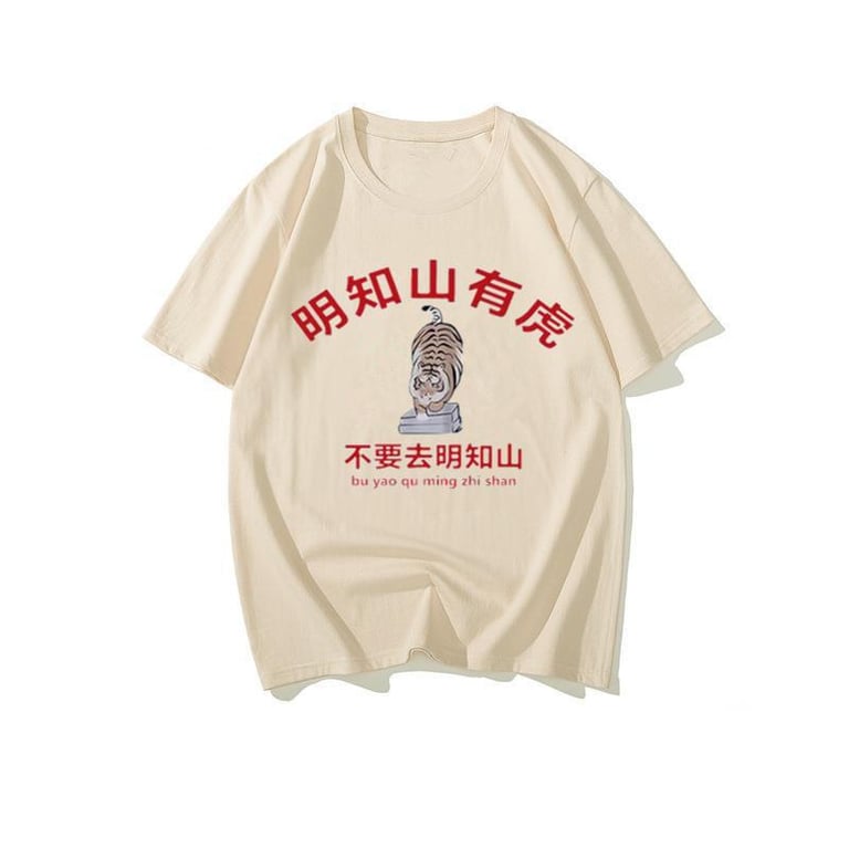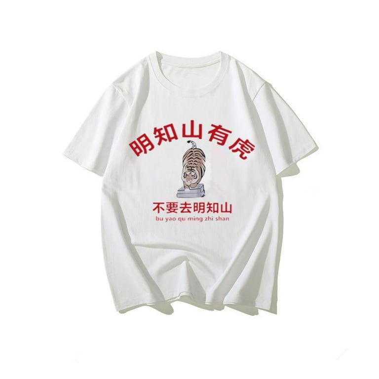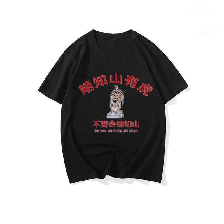 Guochao Nostalgic 80's Retro Love Mingzhi Mountain Tiger Funny Creative Summer Loose Short-Sleeved Men's and Women's T-shirt