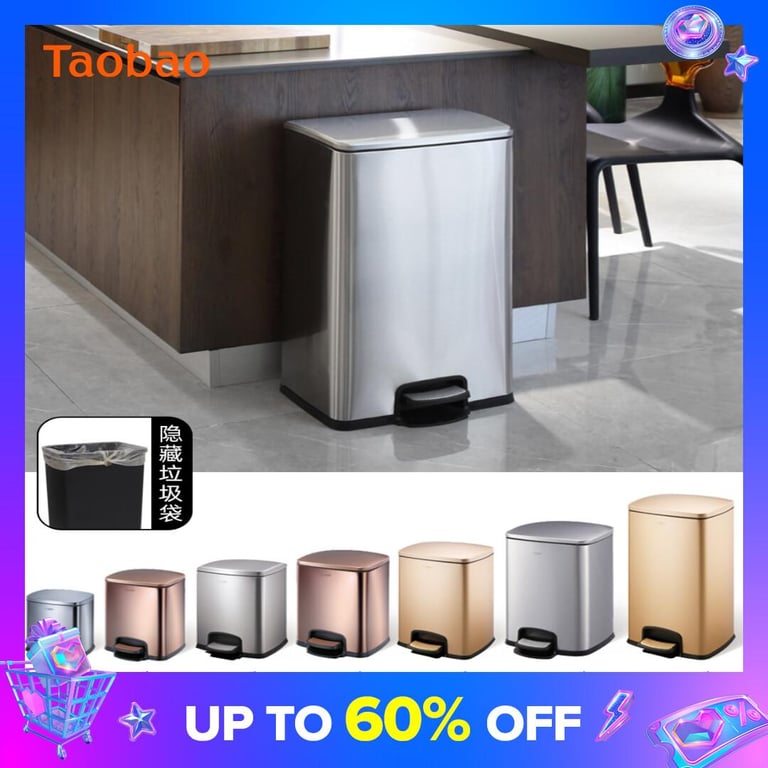 Stainless Steel Trash Can Step-on Kitchen Bathroom Creative Fashion Home Living Room Toilet Bedroom Square Step-on