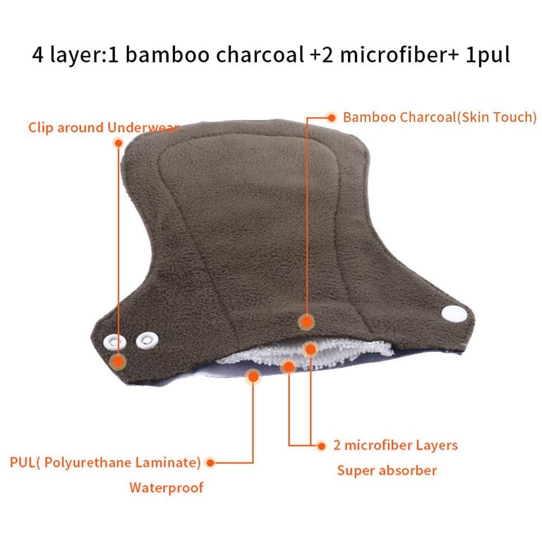 \r\n\r\n2:The Heavy Flow Pads Material: 1 Layer Bamboo Charcoal +2 Layers Microfiber +1 Layer Waterproof Printed PUL