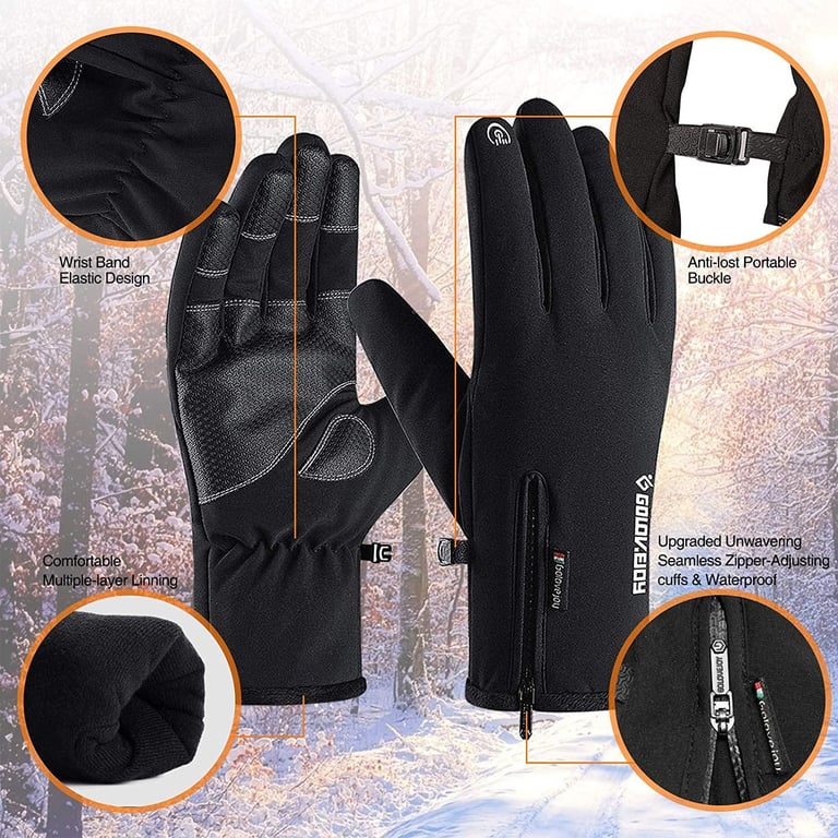UPGRADED 5 LAYERS EXTRA THICK PROVIDE MORE DEXTERITY - The warm gloves insulated with 5-layer thermal softshells keep hands warm in cold weather but lightweight for good packability. High Quality Polar Fleece lining of mens winter gloves is soft and skin friendly. 3M Thinsulate in the middle layer of snowboard gloves is isolated your hands from cold even in -30℉ weather. The cuffs of mens gloves is stretchy enough to go on and off easily, flexible and suitable for your hands in winter.