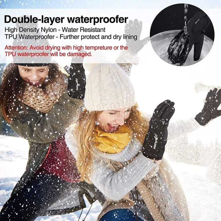 KEEP HANDS BOTH DRY & WARM - Double-layer waterproofer of thermal gloves provides duplicate protection. High density nylon of the sports gloves' outer layer is water resistant. Breathable TPU waterproofer inlayer does a great job keeping moisture out and no sweat staying inside, and they'd best be worn during activities that work in the rainy or snowy days. The windproof gloves with elastic wrist cuff help properly against freezing wind and cold water, making your hands warm and dry.