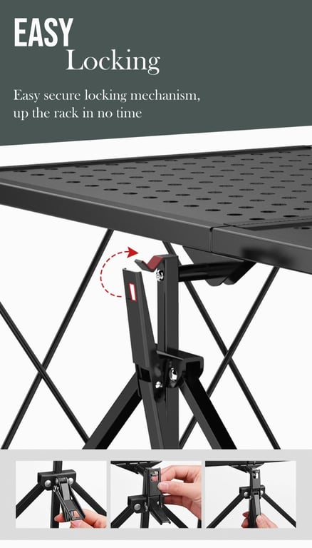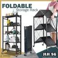 (JIJI.SG) CAMILLE Folding Storage Rack - Fully Foldable EASY INSTALL Full Metal Storage Rack Kitchen Rack / sd