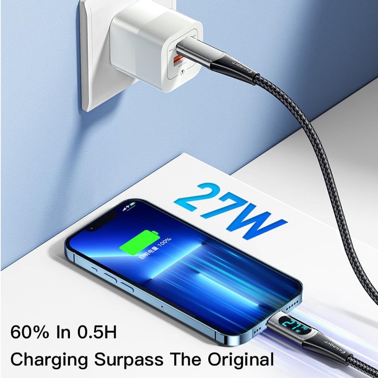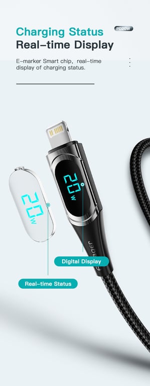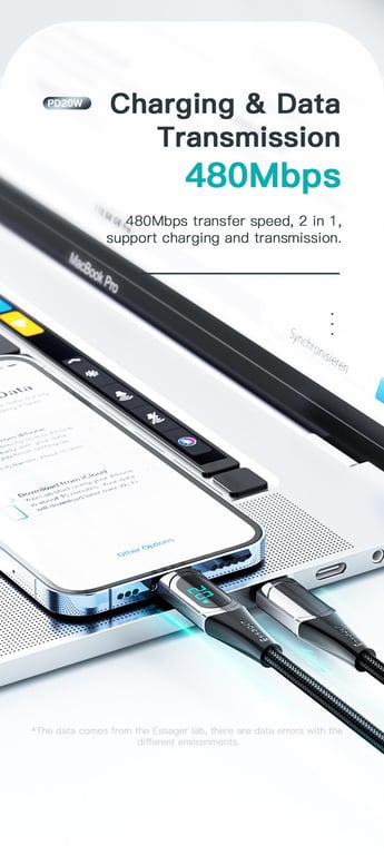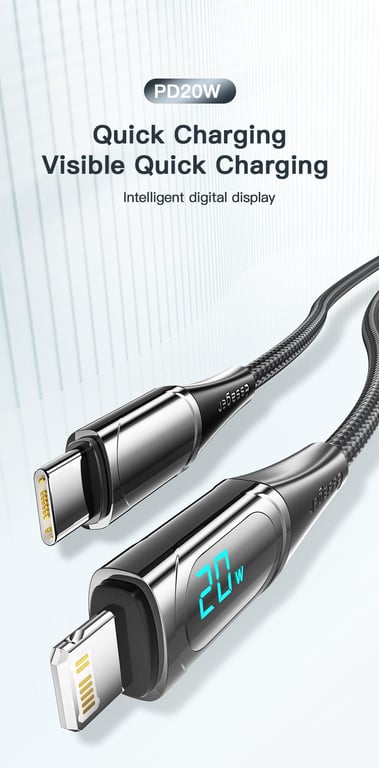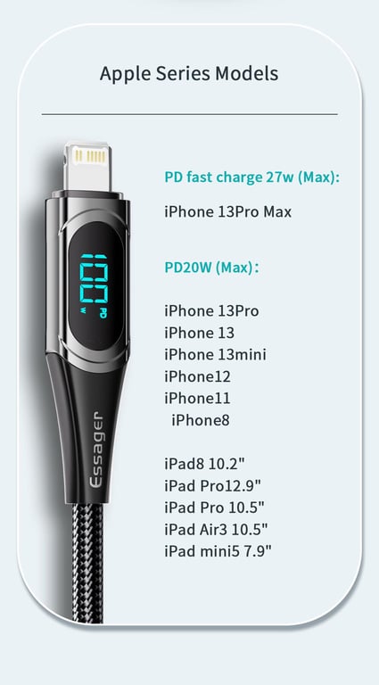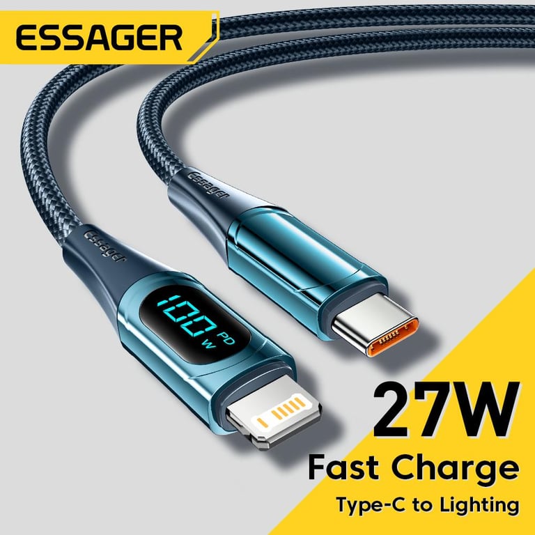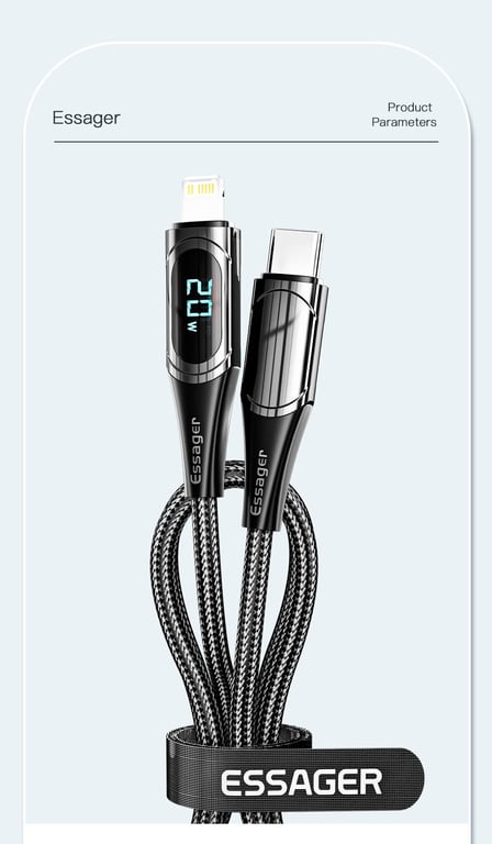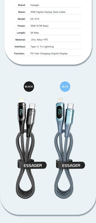 Essager PD 20W Type-C to Lightning Cable LED Display Fast Charging Cable For Phone Charger Cable 13 12 11 XR Pro Max