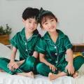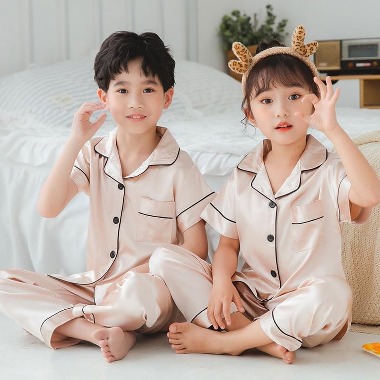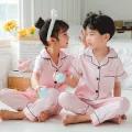Childrens Kids Pyjamas Silk Satin Tops Pant Summer Short Sleeve Long Pant Sleepwear Nightwear Girl Boy Pajama Sets