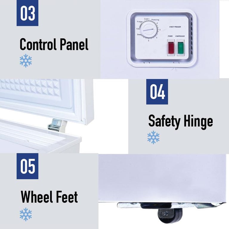 Utilises thick frozen foam design with high efficiency freezing, No auto defrost function, built-in-drainage hole on the bottom of the freezer for easy drainage