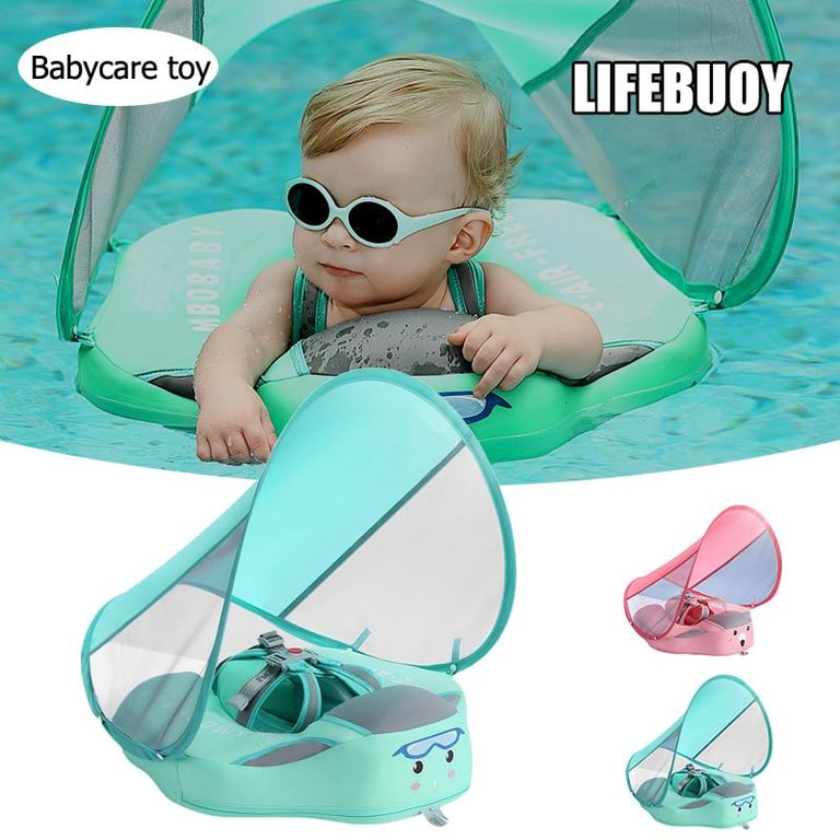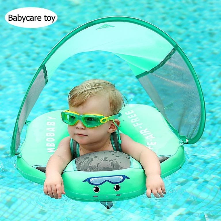 Baby Swimming Pool Float with Removable UPF 50+ UV Sun Protection Canopy,Toddler Inflatable Pool Float Mambobaby Solid Non-inflatable Newborn Chest Floater Baby Waist Float Lying Swimming Ring Pool Toys Swim Ring Swim Trainer For Infant float for kids