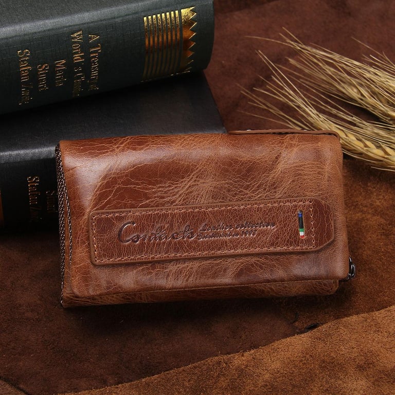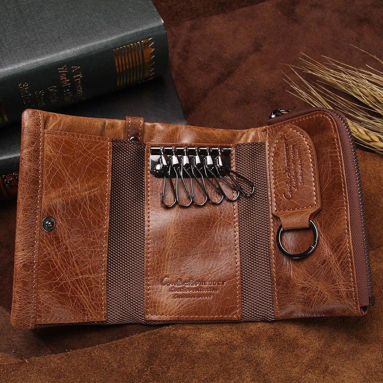 CONTACT'S genuine leather men key wallet small male purse with coin pocket key holder man pouch housekeeper high quality keyring