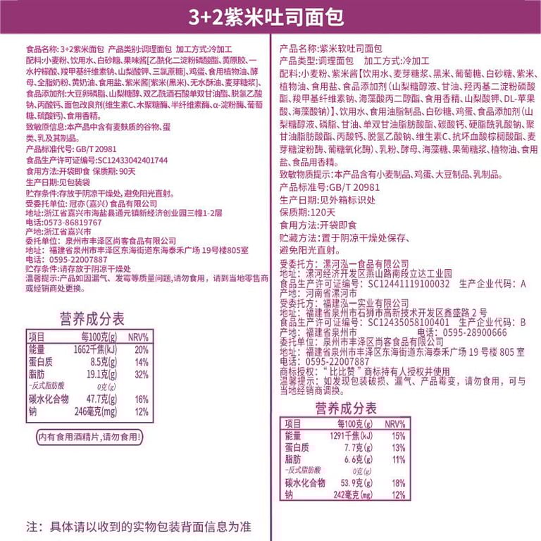 Taste: Send 500g1 box of purple rice soft toast 250g to send the same 250g