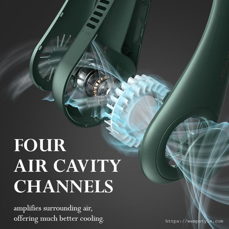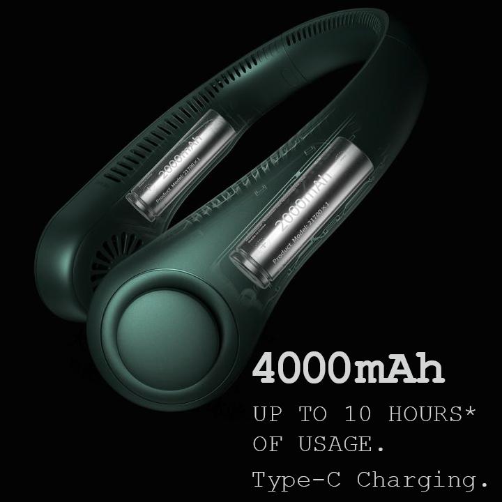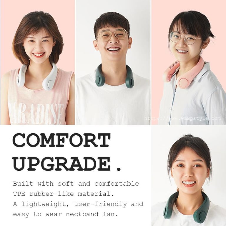 Product Safety — WAMP Bladeless Neckband Fan goes through meticulous manufacturing and rigorous testing processes to upload quality and performance (QC, FC, CE & RoHS Certifications).360° Surround Airflow — With an efficient wind guide and 4 air cavity channels provides consistent and steady airflow in all angles, cools you down quickly.Modern Ergonomic Design — Carefully designed with huge ergonomic analysis on neck circumference so as to find the perfect size that will not cause discomfort for long period of wearing.Physically comfortable and extremely easy to use.3 Adjustable Speeds — Low, Medium and Highspeed settings to cater to all your cooling needs in a relaxed style anytime, anywhere.4000mAh USB Rechargeable Fan — Up to 10 hours* of usage cordlessly coupled with improved Type C fast charging technology to create a better user experience.Lightweight & Portable — ThisUSB Fans is designed to wear on neck, it is small and compact weighing 258g.You can take it everywhere, prefect for your indoor and outdoor activities.