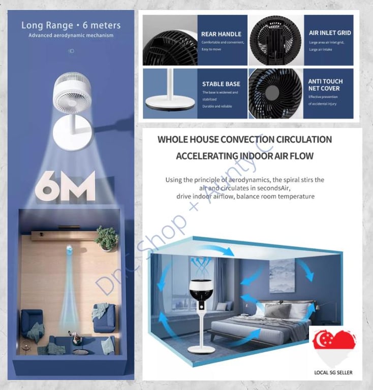 👉 Low Noise Operation✳️ Fans Cover for both Options can be removed by unscrewing the back screw for cleaning purposes ✳️ The fan can be configured for 3 different heights, ie 46cm, 64cm and 83cm. This can be done by screwing in the stand poles provided in the packaging.❇️ We are Spore Seller with local warehouse and carry stocks