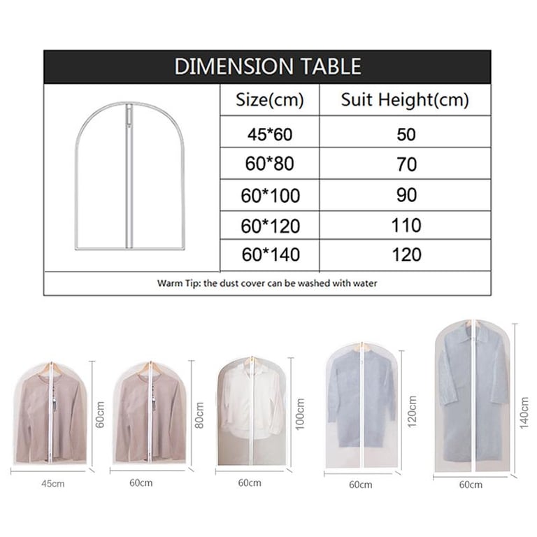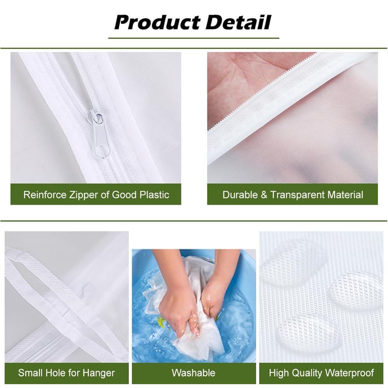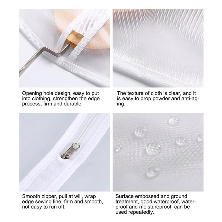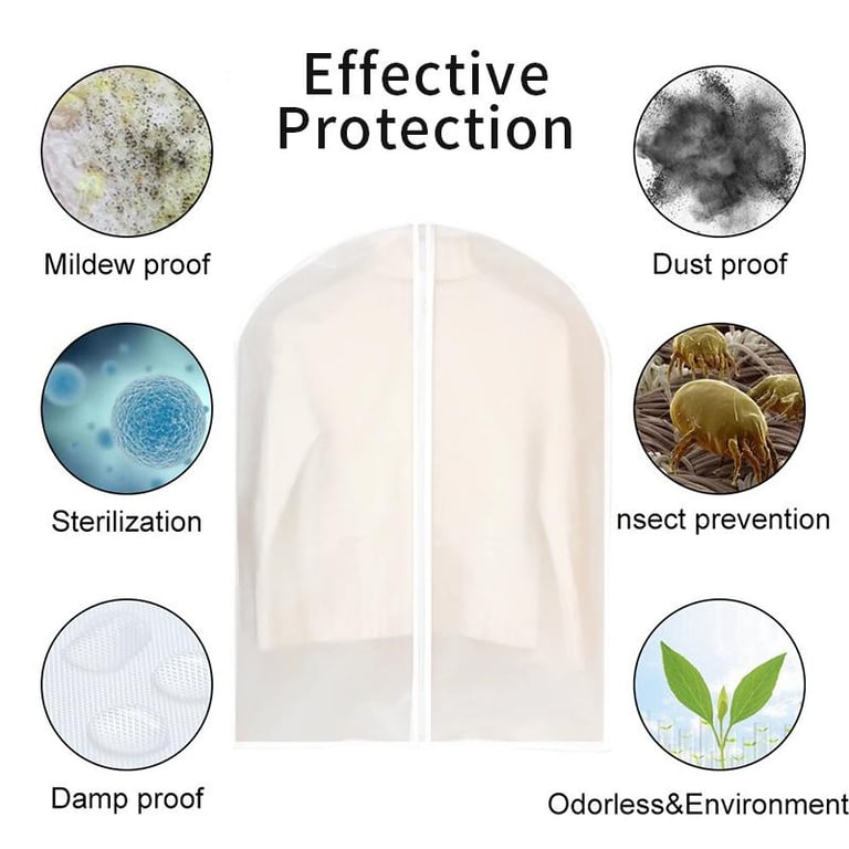Clothing Dust Cover Bag 5PCS Well-Sealed Moth Proof Clothes Protector With Zipper Transparent Moisture-Proof Anti-Dust Storage Bag Hanging Dresses Coats Jackets Suit