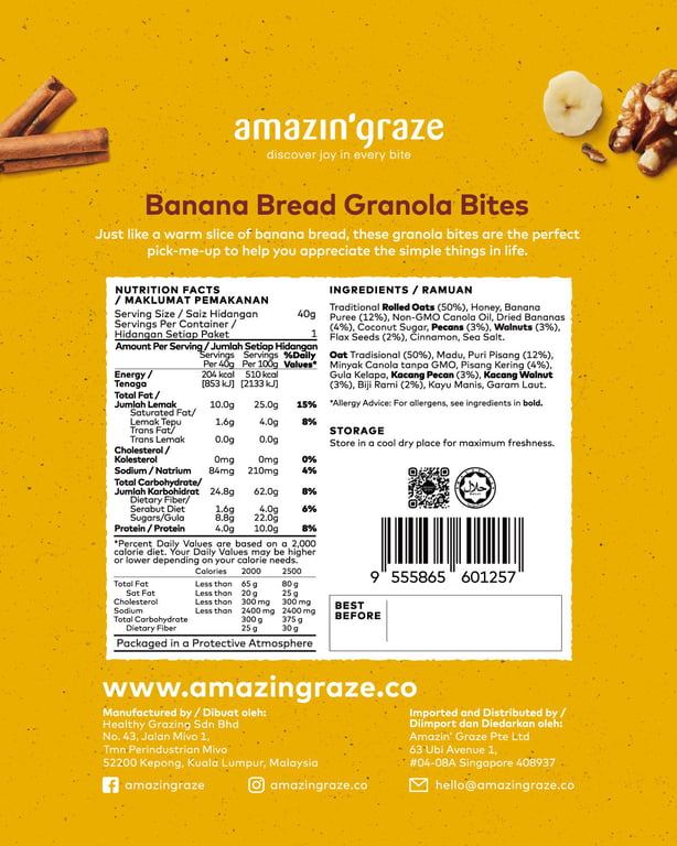 [Bundle of 5] Amazin' Mini Banana Bread Granola Bites (5 x 40g) - Halal Certified