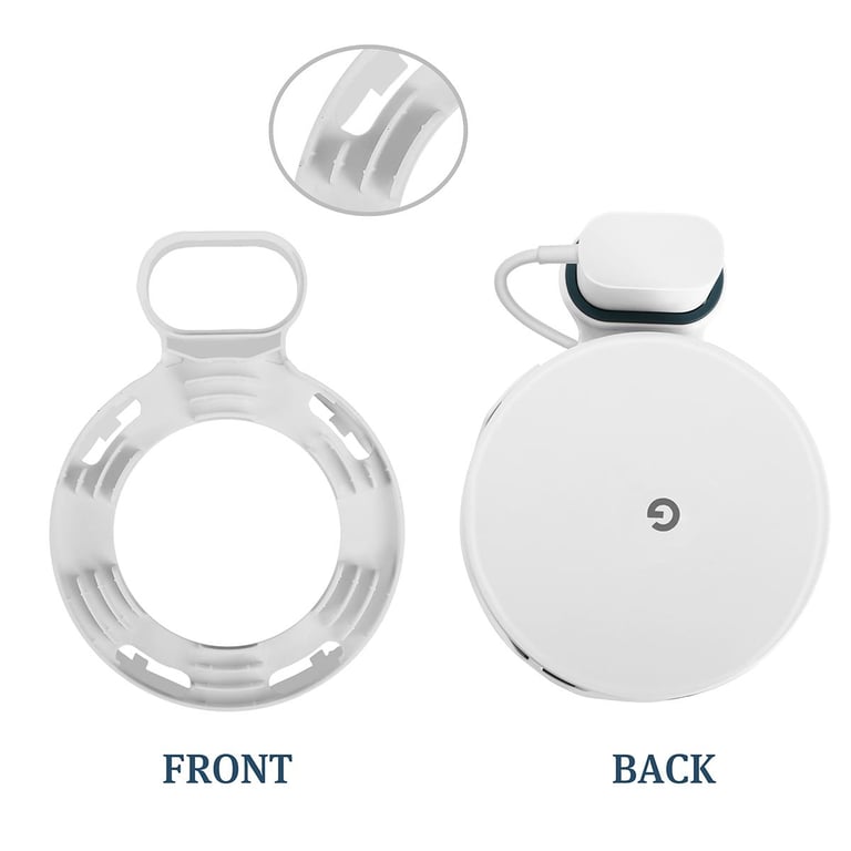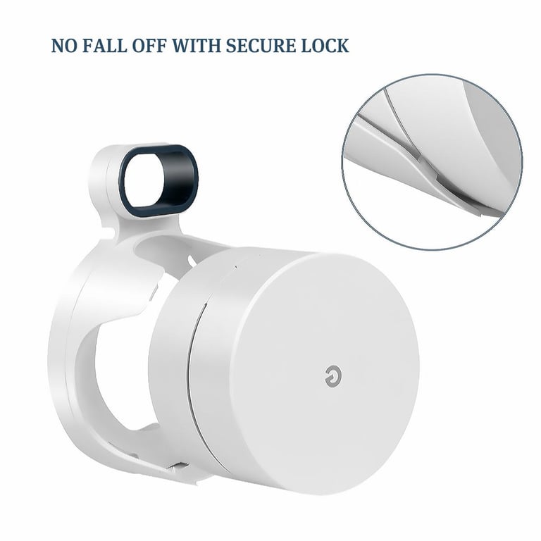 1. High Quality - Adopt to high quality material, firm wall mount for Google WiFi Router that you do need;2. Perfect Size - Tailored design for Google WiFi 1 pack/2 pack/3 pack, there is always one that you want;3. Sleek Design - Looks great anywhere,elegant looking makes your home more neat and clean;4. Easy Installation - Installs in about 10 seconds and requires no tools or any other accessories;5. Space Saving - Excellent cord management, takes up minimal space,a great organizer;6. Sturdy Placement - Provides WiFi router with stable placement and keeps your Google WiFi on the wall stably;7. Better Mobility - Easy to move from room to room, great for anywhere in the house,no effect to the WiFi signal; TAILORED SIZE This wall holder fit the Google WiFi perfectly and was designed well to hold the unit securely which can be mounted at bedroom, bathroom, kitchen, garages, office and more as long as there is a socket. ELEGANT DESIGN and EASY TO USE This wall mount is designed aesthetically that make your google WiFi router an elegant home decoration, an essential router accessory that you must have! And there is no need other tools and installation accessories, super easy to use and won't hurt your wall absolutely.