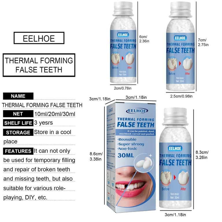 You can replace any missing tooth in less than 5 minutes with an actual realistic looking molded temporary tooth.\n\nMany other tooth replacement kits only come with beads that you have to form into the shape of a tooth.\n\nMany times the beads stain very quickly and need to be replaced often because they become discolored.\n\nWith our Tooth Kit, the temporary tooth does not stain so you don't need to keep purchasing more material because the tooth becomes too discolored.\n\nYou can wear the same tooth as long as you need to!